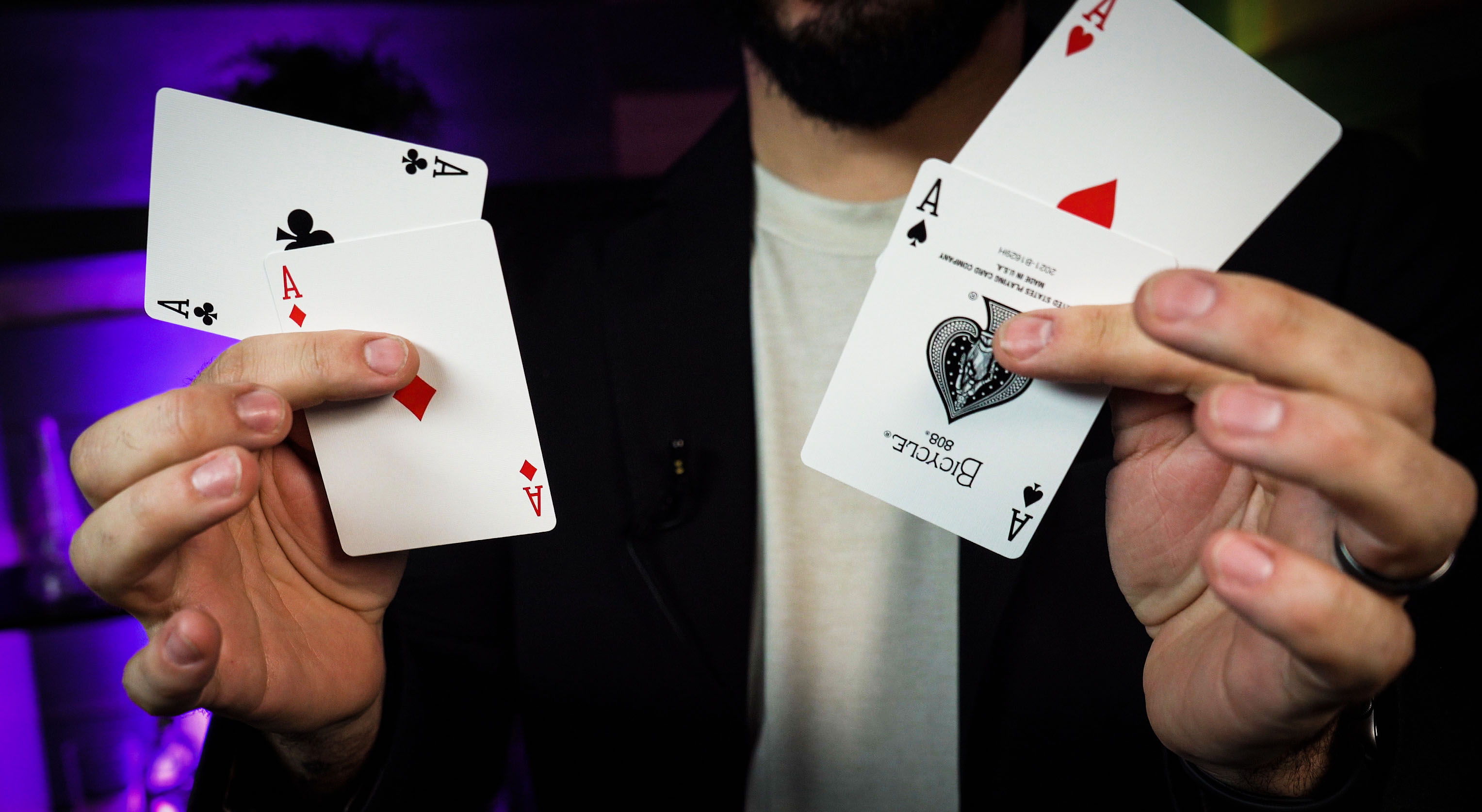 Jacks & Jokers. Two Jacks and 2 Jokers magically change places, then they change into the 4 aces.