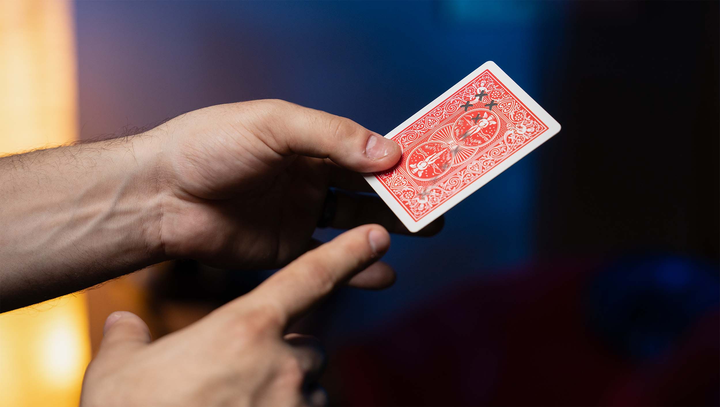 A brilliant gimmick that allows you to perform an impossible piece of magic. A spectator selects ANY card and signs the face. 4 black X'S are drawn, one in each corner on the back of the signed card. No covering of any kind the X'S visually jump one at a time into the top left corner.