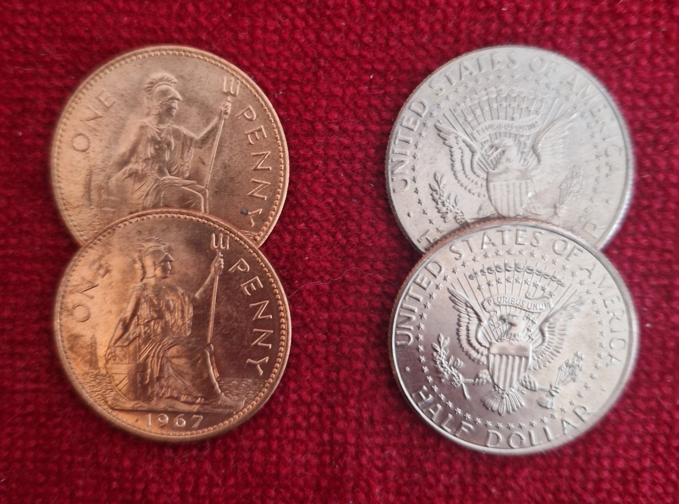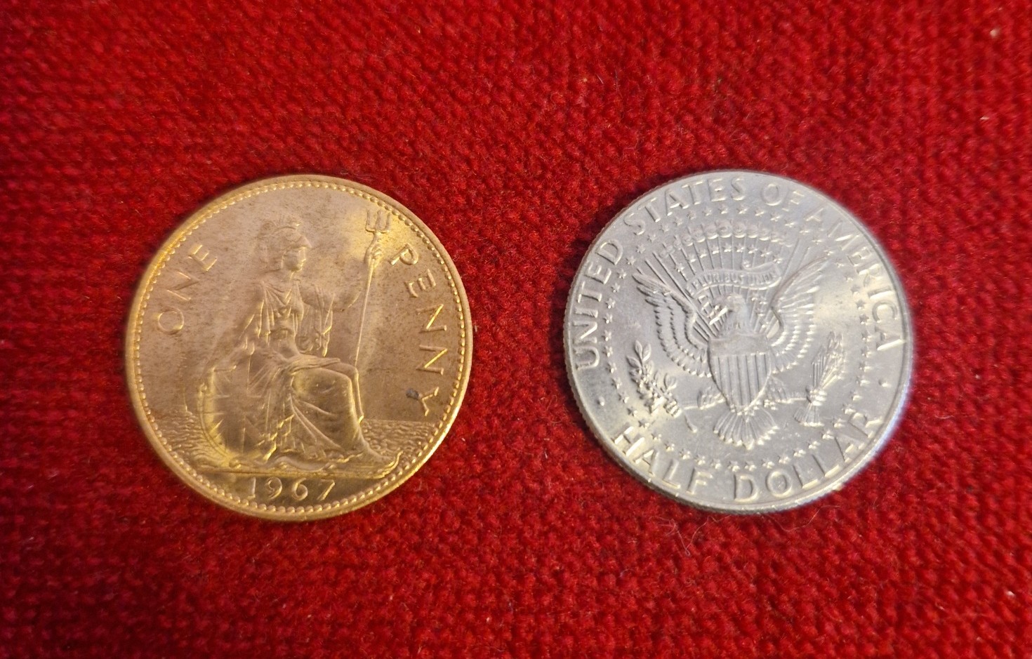 Kennedy Hopping half is made from real USA Kennedy Halves and UK English Pennies. These are top quality and highly recommended.