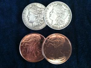 We now have Hopping Half in Morgan Dollars and a beautiful solid dollar size copper coin. These are top quality and highly recommended. The dollar size makes this set super visual.
